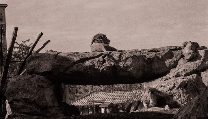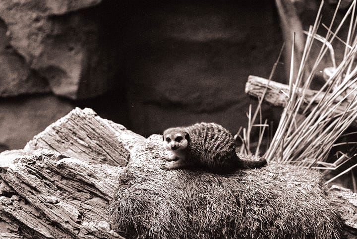 I stopped to change film near the penguin enclosure, and to my surprise an older man crossed the way, making a beeline for me. He came up and told me that some of the penguins had red stuff on their faces, did I know what that was? I looked over and couldn’t see anything, but was mostly baffled that for all the people in his immediate vicinity, he sought me out to ask this. For context, I was a vision in beige, khakis, shirt/jacket thing, Frog & Toad hat, and a YOUNG FRANKENSTEIN shirt. All I could manage was, “Huh… wonder why,” in the most interested tone I could produce. I was so thrown off by this that I texted a friend back in DC to see if she thought I looked approachable.