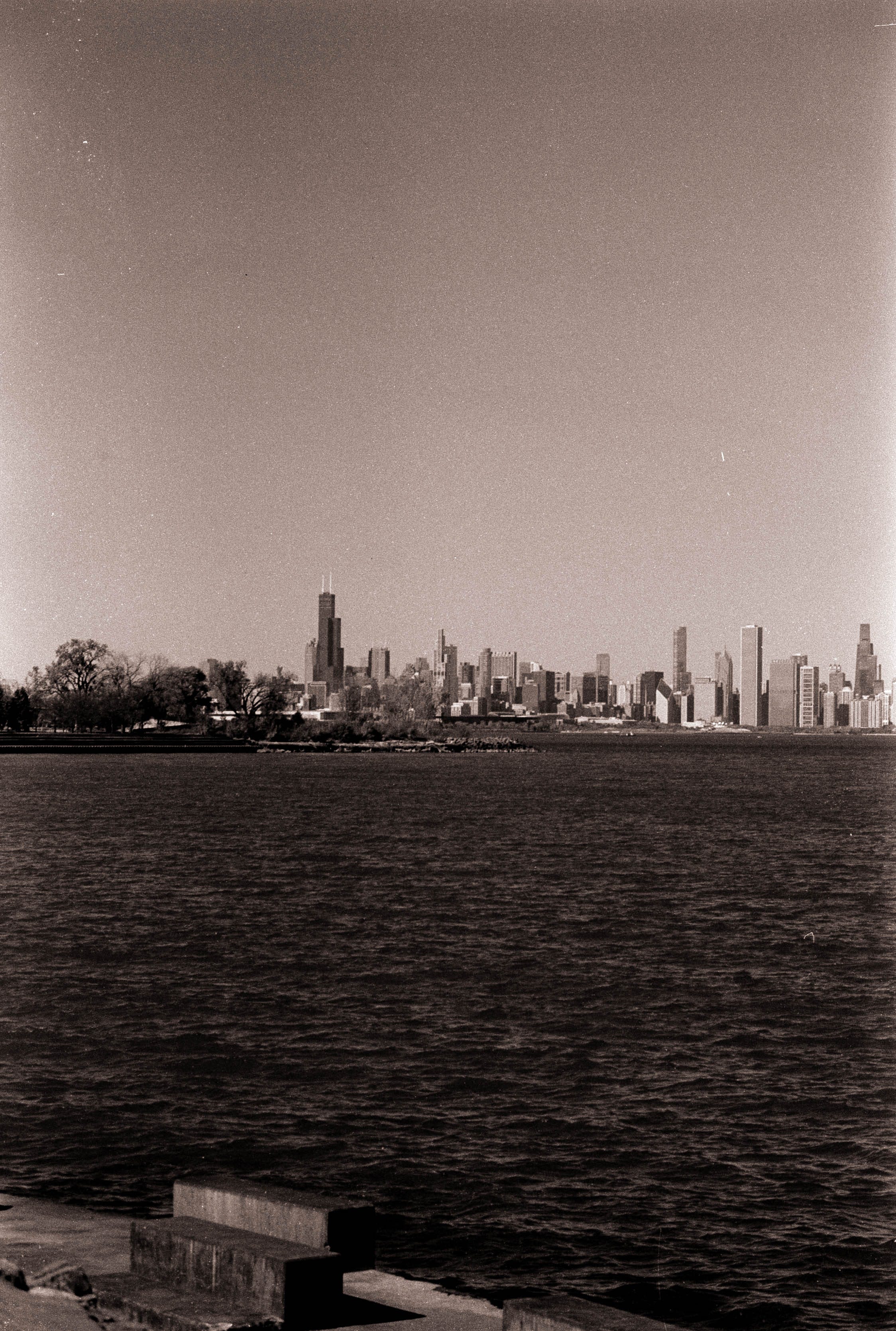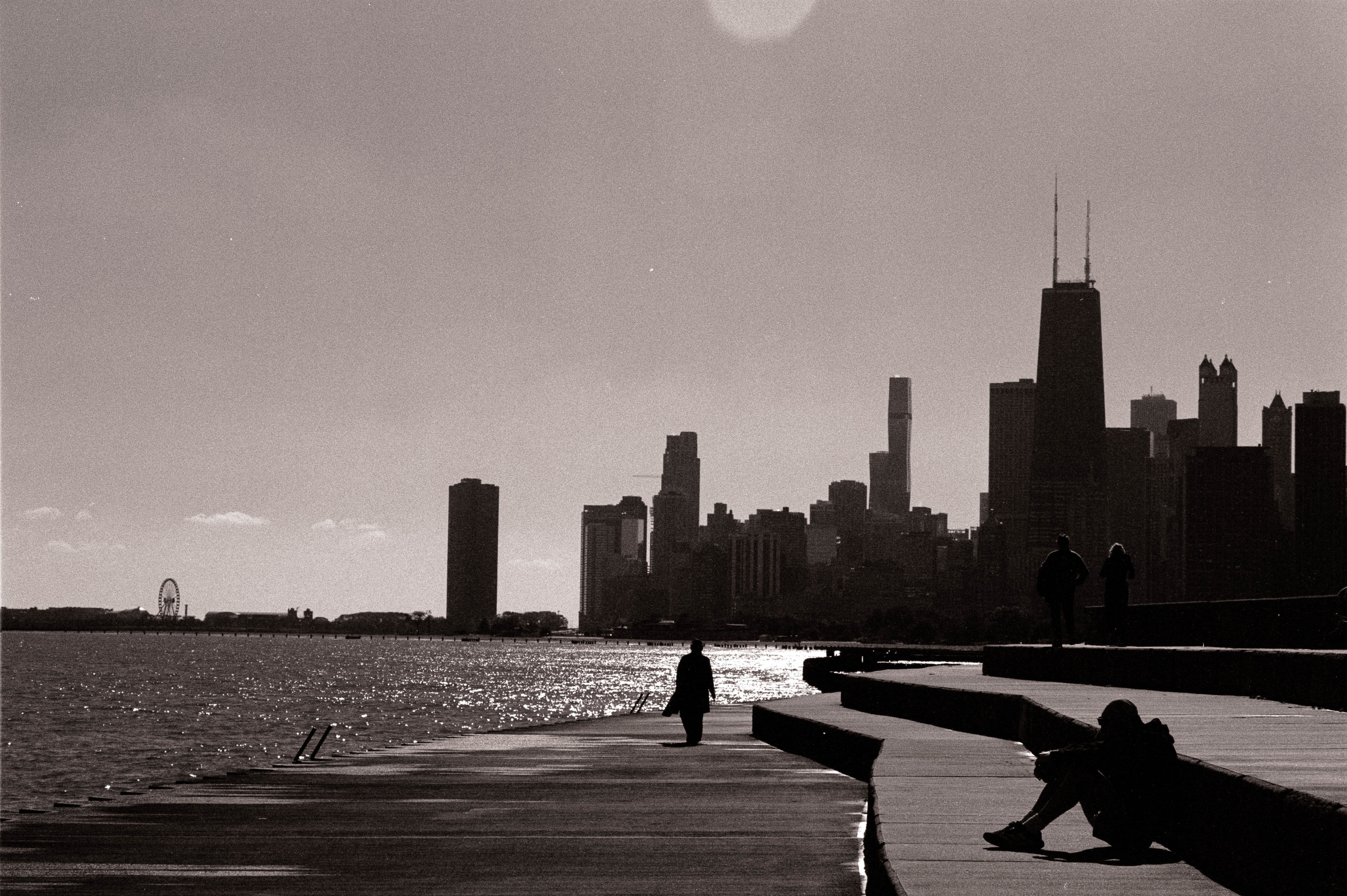 Promontory Point hasn’t changed at all, and I took a few pictures looking South and then looking North. I’m not sure visibility was ever so clear when I lived here, and I used to visit almost every day. I guess the city(ies?) I was seeing across the way would be either New Buffalo or St. Joseph. I sat on a bench for a bit and people watched and soaked in the place. The leaves throughout Hyde Park are what might be called “peak bloom” and were lovely. I almost regretted only shooting black and white film. A few people walking by on the path said it was a perfect day for photography. Yup. I’m pretty sure those exchanges, and the coffee shop guy, were the only times I spoke that day.